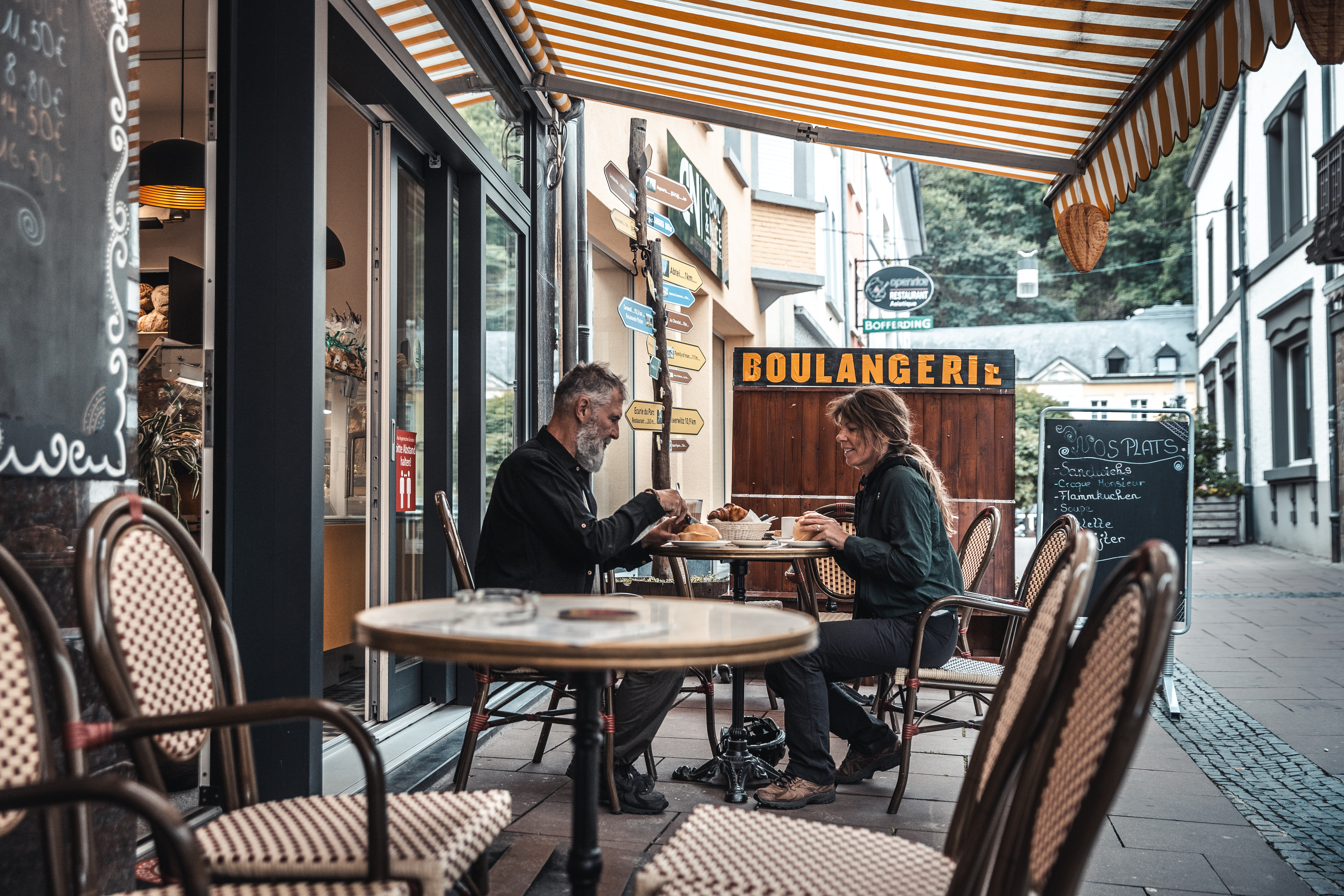 BEIM LUSS is an institution in the heart of Clervaux. This traditional bakery offers not only bread, baguettes, and pastries, but also a snack menu for lunch. They provide hearty takeaway sandwiches, as well as seasonal soups, croque-monsieur, omelets, kniddelen, pâté plates, and a weekly menu. The attached souvenir and local product shop is also appreciated.